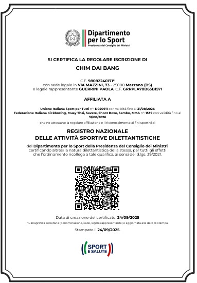 Certificazioni e convenzioni Per ulteriori informazioni sulle certificazioni e convenzioni siete pregati di contattarci. certificazioni presenti: Coni, Sport e salute. CONI Sport e salute FederKombat 2025